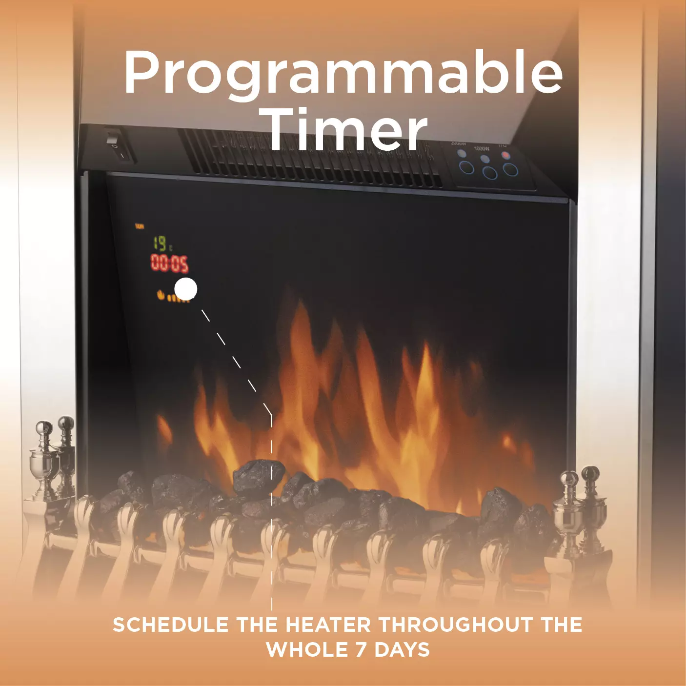 A programmable timer is also included, which allows you to set the heater to come on at certain points through a 24-hour period, as well as scheduling it to turn on at various points throughout the 7 days, making sure your room is already heated when you get home. A remote control is included, letting you adjust the various settings from the comfort of your sofa. It’s also very easy to use, with minimal effort required for installation, so you can start heating the room up within minutes. Thermal cut-off provides extra safety and peace of mind. This electric inset fire comes with 2 years warranty, giving you the added peace of mind in the event of the unit being faulty.