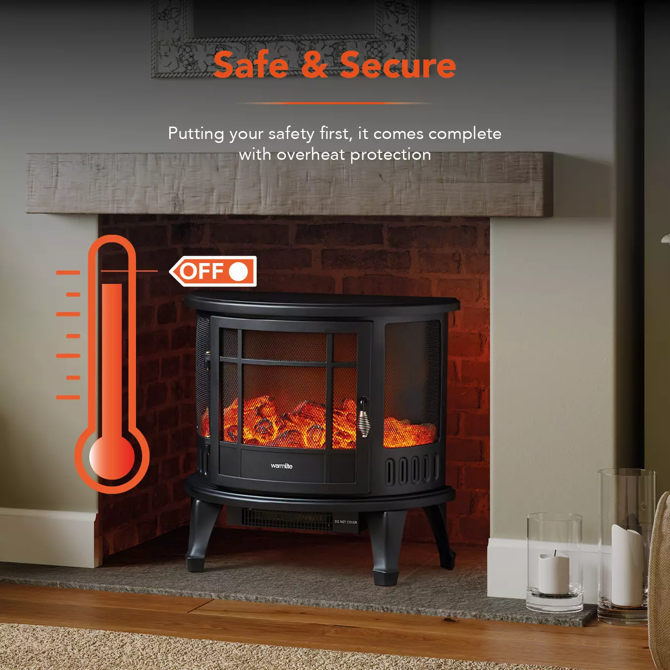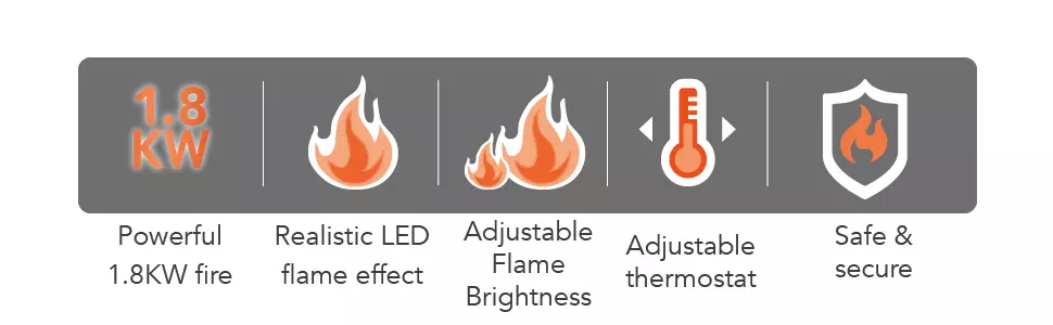 All the benefits of a traditional log burner without the mess! Relish in the dreamy atmosphere created from the realistic LED flame effect, amendable using the adjustable dial. Whether you want a soft glow to enhance a romantic evening at home, or an intense light flame to brighten up your living room. The powerful 1800W output accompanied with a maximum temperature of 125°C, rooms are heated rapidly, meaning you can feel comfortable and warm in a matter of moments. Simply select the ideal temperature using the adjustable dial. Ensuring a safe experience for every operation, the fireplace is fitted with overheat protection, meaning the unit will automatically switch off if it becomes too hot. Suitable for use around children and pets.